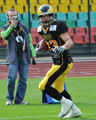 Dabei sah es in der ersten Halbzeit alles andere als rosig für den fünfmaligen Deutschen Meister aus. Die Gäste aus Weinheim spielten unbeschwert auf und gingen sogar durch einen Kick Off Return Touchdown von James Taylor in Führung. Während die Adler-Offensive durch Field Goals und Läufe von David McCants Punkte auf das Scoreboard brachte, tat sich die Berliner Defensive äußerst schwer gegen die Gäste aus Weinheim. Wir müssen uns selbstkritisch eingestehen, dass wir die Longhorns unterschätzt haben. Adler-Linebacker Oliver Friedrich nahm sich und seine Mitspieler nach dem Spiel nicht von der Kritik aus, dass man doch etwas zu selbstsicher in die Partie gegangen und überrascht war, wie gut der Gegner mithielt.