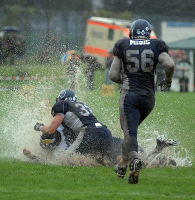 Die Adler starteten mit Abstimmungsschwierigkeiten im Angriff ins Match. Dabei war der starke Regen für beide Teams ein großes Problem. Ständig wechselten die Angriffsrechte. Letztlich konnten die Blue Devils, durch zwei fatale Fehler der Adler, mit zwei Field Goals in Führung gehen. Die anwesenden Fans sahen ein Spiel, das vor allem von den Defensiven dominiert wurde. "Wir konnten bei diesem Wetter unseren Angriff nicht etablieren. So konnten sich die Devils in den entscheidenden Situationen auf uns einstellen. Bei so einem Wetter ist für beide Teams enorm schwierig Punkte zu erzielen. Der Sieg der Blue Devils ist verdient, da wir es nicht geschafft haben unsere Chancen in Punkte umzuwandeln. Wir müssen jetzt alle Kräfte mobilisieren um die letzten drei Spiele erfolgreich zu bestreiten." so der Berliner Head Coach Özdincer.