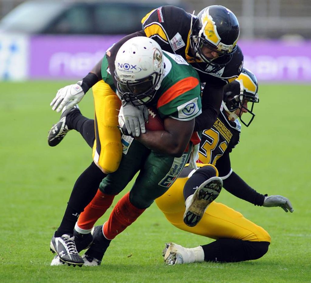 Während sich Callahan im Heimspiel gegen die Assindia Cardinals einen Kreuzbandriss zuzog, verletzte sich Emslander beim Eröffnungsspiel der EM in Frankfurt am Main ebenfalls am Knie. Ich habe mich sehr hart auf die Saison vorbereitet. Bisher lief alles nach Plan. Die Saison so beenden zu müssen ist bitter. Ich bin sehr enttäuscht!, kommentiert Emslander.