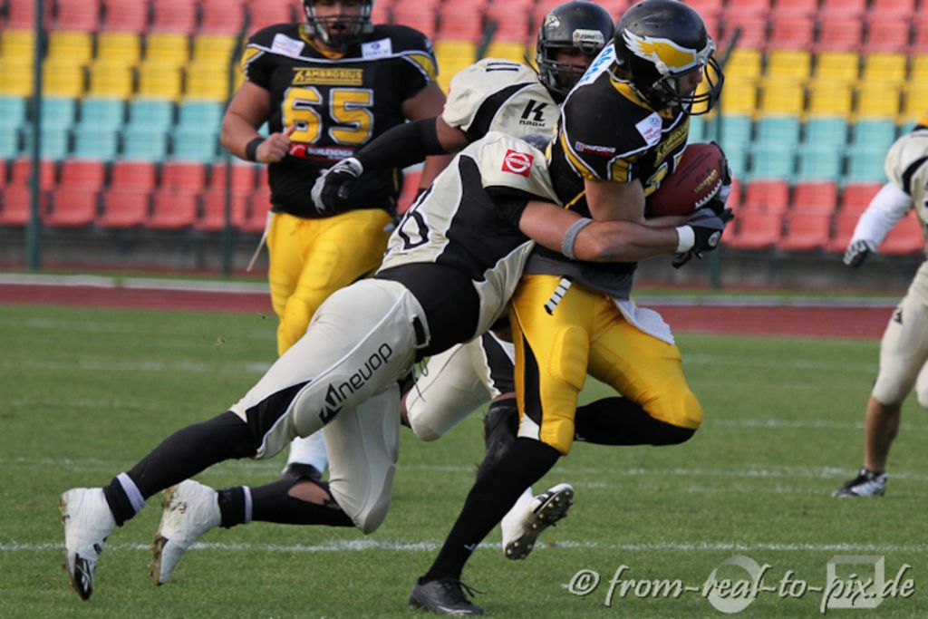 Die Adler haben es in der Hand. Nach einer harten Saison mit vielen schweren Rückschlägen durch Verletzungen, die das Saisonende für zahlreiche Stammspieler bedeutete, haben die Adler nun die Chance dem erklärten Ziel German Bowl ein Stückchen näher zu kommen. Wenn das Team von Head Coach Shuan Fatah am Sonntag im Marburger Georg Gaßmann Stadion einläuft sind die verletzten Spieler in Gedanken bei ihrem Team. Ich freue mich, dass die Jungs trotz der vielen Ausfälle so erfolgreich geblieben sind. Wir mussten dieses Jahr viele Stammspieler während der Saison ersetzen. Das geht nur, wenn man genügend Spieler und gute Coaches hat. Natürlich bin ich sehr enttäuscht, dass ich nicht mit den Jungs um den Einzug in den German Bowl kämpfen kann, aber ein Kreuzband im Knie braucht lange um zu heilen., so Adler-Quarterback Kyle Callahan. Der sympathische Spielmacher aus den USA verletzte sich im Spiel gegen die Assindia Cardinals schwer am Knie Diagnose Kreuzbandriss. Das gleiche Schicksal ereilte Florian Emslander (Defensive End), Mario Schmitt (Cornerback) und Josef Fuksa (Offensive Line).