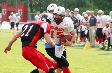 Auch nach der Halbzeit zeigte sich den Fans das gleiche Bild. Beide Defenselines hatten ihre Gegner stets im Griff, so dass weder Rothenburg noch Königsbrunn nennenswerten Raumgewinn erzielen konnten. Zwar gelang es der Rothenburger Offense immer wieder einmal in die Nähe der schwäbischen Endzone zu kommen, jedoch ohne zählbare Punkte. Leider haben wir uns durch persönliche Fehler dann immer wieder zurückdrängen lassen, so Headcoach Martin Habelt.