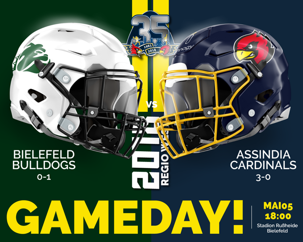Die Cardinals werden mit voller Konzentration an die Aufgabe in Ostwestfalen-Lippe herangehen. Die Coaches wissen, es wird nicht ganz so einfach: „Wir werden in Bielefeld auf einen völlig anderen Gegner treffen, und haben versucht, die kurze Zeit bis zum nächsten Spiel zu nutzen, um das Team optimal auf den Gegner einzustellen.“ Kick-Off in Bielefeld ist am heutigen Samstag um 18 Uhr.