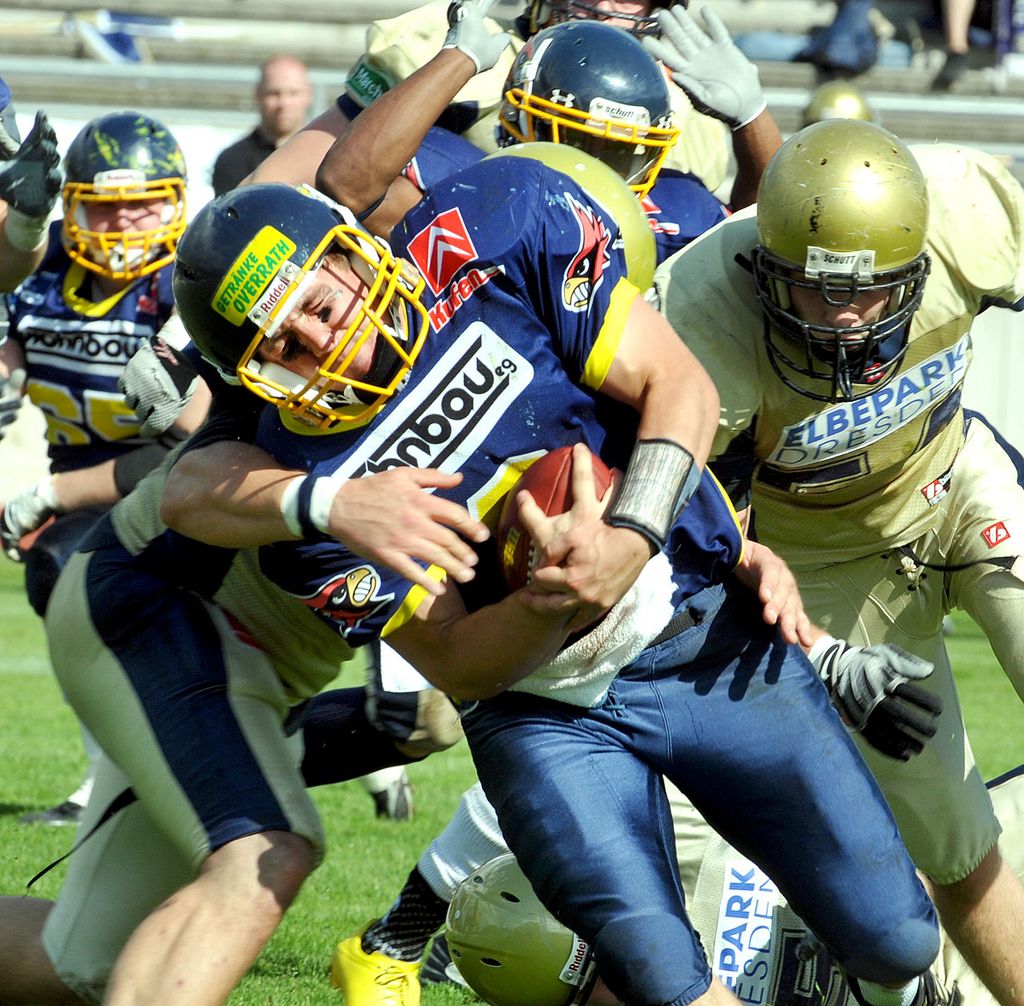 Die Entscheidung sollte im letzten Viertel fallen: Holger Hempel besorgte den Gästen 3:02 Minuten vor dem Ende mit einem Fieldgoal die 24:17-Führung. Mit einem starken Lauf brachte Dervon Wallace seine Mannschaft zwar noch einmal bis an die 26-Yard-Line, doch auch der letzte Angriff führte nicht zum Erfolg: Ben Widmyers Pass berührte den Boden, bevor Lenni Gödde den Ball aufnehmen konnte. 28 Sekunden vor dem Ende bedeutete dies einen erneuten Ballbesitzwechsel und damit den Sieg für die Dresden Monarchs.