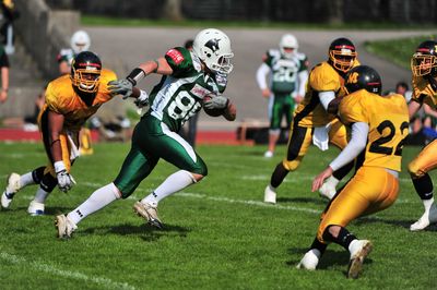 Der Münchner Führungstouchdown zum 7:0 aus dem zweiten Viertel hätte dann auch noch verschmerzt werden können, nach der Pause legten die Gastgeber aber schnell zum 13:0 nach. Einen Pass von Felix Brenner, der nach der Pause für den an einer Zehenverletzung aus Kiel laborierenden Jordan Neuman als Spielmacher auflief, fing Max Seroogy zum 6:13-Anschluss. Noch vor dem letzten Seitenwechsel erhöhten die Münchner aber auf 20:6 und am Ende mussten sie sich gar in eine 6:36-Niederlage fügen.