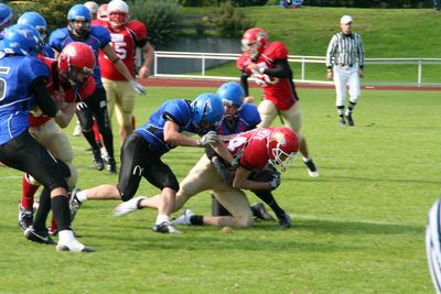 Den Start in das Hinspiel verschliefen letzten Sonntag so ziemlich alle Karlsruher Spieler. Im ersten Viertel konnte der Angriff der Badener Greifs zweimal nichts ausrichten, während die Verteidigung ebenfalls nicht in der Lage war, dem anfänglich schnellen Spiel der Allgäuer etwas entgegen zu setzen. So stand es zu Beginn des zweiten Quarters nach einem Lauf- und einem Pass-Touchdown bereits 0:14 aus Sicht der Gäste.