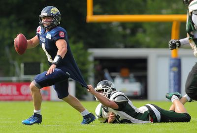 Karlsruhes Jonas Lohmann täuschte in der folgenden Angriffssequenz eine Ballübergabe an seinen Runningback an, behielt jedoch den Ball und erlief über 10 Yards einen Touchdown zum 24:38.