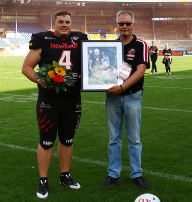 Es folgten jeweils ein Punt der Teams, bevor sich die Lions nochmals in Richtung Dresdner Endzone auf den Weg machten. Highlight dieser letzten Angriffsserie der Löwen vor dem Schlusspfiff, war der 27 Yards Passfang der neuen #94 Alan Steinohrt, der sich nach seinem ersten Einsatz am vergangenen Wochenende in Kiel, nun auch vor heimischen Publikum erstmalig aktiv präsentieren konnte.