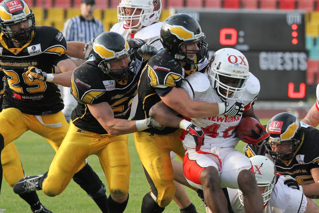 „Wenn wir es schaffen, schon in der ersten Halbzeit, 100% als Team zu spielen, sind wir schwer zu stoppen. Das konnte man heute sehen. Es ist jedoch enorm anstrengend jedes Mal ein Comeback zu starten. Wir konzentrieren uns nun auf die Swarco Raiders und das Eurobowl-Finale in der kommenden Woche. Laut Expertenmeinungen haben wir dort „eigentlich“ keine Chance – DAS IST UNSERE CHANCE!“, meint Defensive-End Florian Emslander lächelnd.