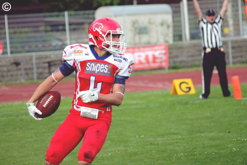 Wie groß die Personalnot bei den "Berglöwen" am Sonntag in Essen war, machte vor allem der Blick in die Starting Defense klar. Die Nummer 55 auf der Middle-Linebacker-Position hatten sowohl die Essener Angriffsspieler als auch die Cougars-Fans nicht auf dem Zettel: Head Coach Willie J. Robinson (38), bis zum Jahr 2000 Stammspieler an der University of Louisiana-Lafayette (NCAA/Div. I), zog sich selbst noch einmal den Helm über und feierte ein überraschendes Comeback als Verteidiger auf dem Feld. Und der spielende Coach machte seine Sache trotz acht Jahren ohne Spielpraxis gut, er stopfte Löcher in der vordersten Abwehrreihe, war an mehreren Tackles beteiligt und erzielte einen Quarterback-Sack. Sein Einsatz war nötig gewesen, weil neben Linebacker Jonas Tykfer auch noch Backfield-Spieler Markus Sonntag fehlte und Linebacker Norman Witt so auf die Cornerback-Position wechseln musste.