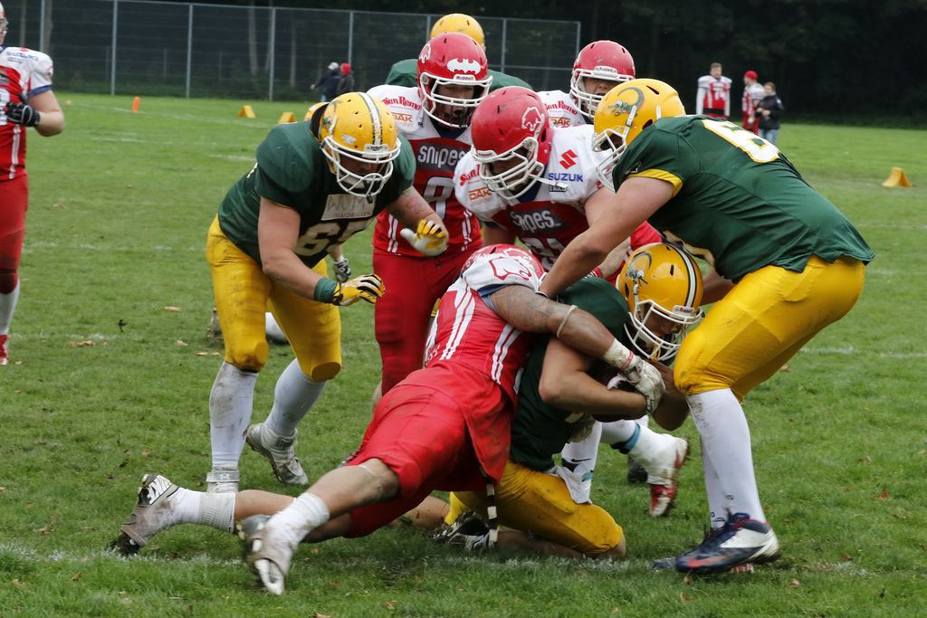 Im direkten Gegenzug konnten die Cougars mit ihrer auch in dieser Saison überragenden Offense ausgleichen. Auch der folgende Drive der Crocodiles startete überzeugend, dann aber verletzte sich Joao Kraphol bei einem Lauf, sodass Benjamin Mentges seinen Posten übernahm. Der Drive wurde dann gestoppt, die Gäste konnten den Punt blocken und zum Touchdown zurücktragen. Wer dann dachte, dass die Crocodiles nicht zurückkommen sah sich getäuscht. Benjamin Mentges kam jetzt besser ins Spiel, konnte einige schöne Pässe anbringen und auch einige Yards selbst erlaufen, so dass sich die Kölner kurze Zeit später an der 2 Yard Linie der Cougars wiederfanden. Dort wurde der Drive allerdings gestoppt, den vierten Versuch spielten die Gastgeber aus, konnten aber keinen Touchdown erzielen.