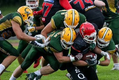 Allerdings hielt die Freude nur kurz, da die Unparteiischen eine Regelwidrigkeit auf Seiten der Kölner gesehen haben und den tollen Lauf somit anullierten. Die weiteren Bemühungen konnten von den Royals unterbunden werden, so dass die Gäste nochmals in Ballbesitz kamen um ggf. noch etwas Ergebniskorrektur für das Rückspiel zu betreiben. Mit etwas über drei Minuten verbleibender Spielzeit gelang es dann jedoch Verteidigungsspieler Paul Merten einen Pass des Gästespielmachers abzufangen und sogar noch für weiteren Raumgewinn zurückzutragen. Mit seinem zweiten Touchdown des Tages und in der GFL2 überhaupt trug sich abschließend nochmals Eigengewächs Glody Ngovo in die Punkteliste ein. Auch der Extrapunkt wurde wieder sicher verwandelt, so dass die Crocodiles letztlich mit 37:19 ihren vierten Sieg im fünften Spiel perfekt machten.