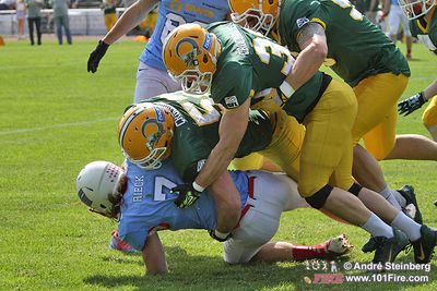 „Alles in allem haben wir gut gespielt, in der Offense hat die O-Line einen fantastischen Job gemacht, einziger Kritikpunkt sind die vielen Strafen, die uns in aussichtsreichen Situationen immer wieder zurückgeworfen haben. Da die Defense kaum etwas zugelassen hat haben wir das Spiel dennoch verdient und am Schluss sicher gewonnen“, so Offense Coordinator Allan Verbraken nach den Spiel.