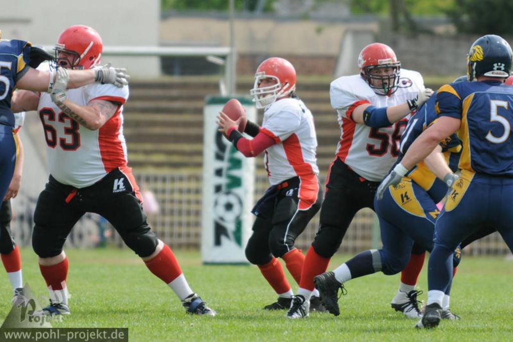 Uns stehen wieder alle Spieler zur Verfügung. Dementsprechend können wir aus dem Vollen schöpfen und trauen uns eine Überraschung zu. schätzt Coach Ralph Dietrich ein. Ins gleiche Horn stößt sein Verteidigungskollege René König: Die Defense ist noch nicht ganz so stark wie im letzten Jahr. Aber wir haben bisher weniger Punkte zugelassen, als unser nächster Gegner aus Leipzig. Wenn der Angriff punkten kann, sehe ich dem Spiel gelassen entgegen. Mittlerweile hat das sächsische Derby zwischen den Chemnitz Crusaders und den Leipzig Lions schon etwas Tradition. Immerhin spielt man bereits das achte Mal gegeneinander. Zwar konnten die heimischen CWSV-Footballer noch nicht gegen die Lions gewinnen, aber man hatte den Gegner bereits mehrfach am Rande einer Niederlage. Unvergessen bei den Fans ist das letztjährige Heimspiel, in dem die Crusaders nach einem Spiel auf Augenhöhe mit auslaufender Uhr das Unentschieden schafften. Der eine Punkt war für den Klassenerhalt immens wichtig. Das anstehende Spiel ist nach der Niederlage letzte Woche gegen die Berlin Bears eigentlich noch wichtiger. Ein Sieg muss her, damit der Anschluss nicht verloren geht und die Crusaders auf den fünften Platz der Tabelle vorrücken können. Doch dieses Unterfangen wird schwer, da sich der Gast aus Leipzig den Aufstieg in die zweite Bundesliga auf die Fahnen geschrieben hat und bisher auch auf dem besten Wege dahin ist.