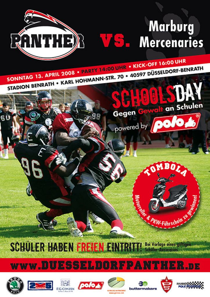 Der 13.April, rund um das Vorbereitungsspiel der Panther gegen die Marburg Mercenaries, wird unter dem Motto "Schools Day - Sport gegen Gewalt an Schulen" stehen.
