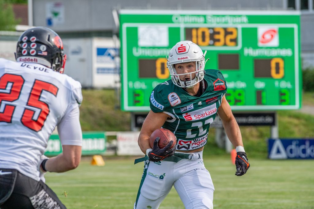 Trotz diesem Verletzungspech konnten sie den Hallern insbesondere mit ihrem Passspiel über weite Strecken Paroli bieten. Immer wieder fand ihr Quarterback Jack Lindsey freie Anspielstationen in oftmals von der Haller Defense ungedeckten Zonen. Das wusste auch Halls Head Coach Jordan Neuman nach dem Spiel zu würdigen: „Die Hurricanes haben ein sehr gutes und straff organisiertes Passspiel. Das ist nicht einfach zu verteidigen.“