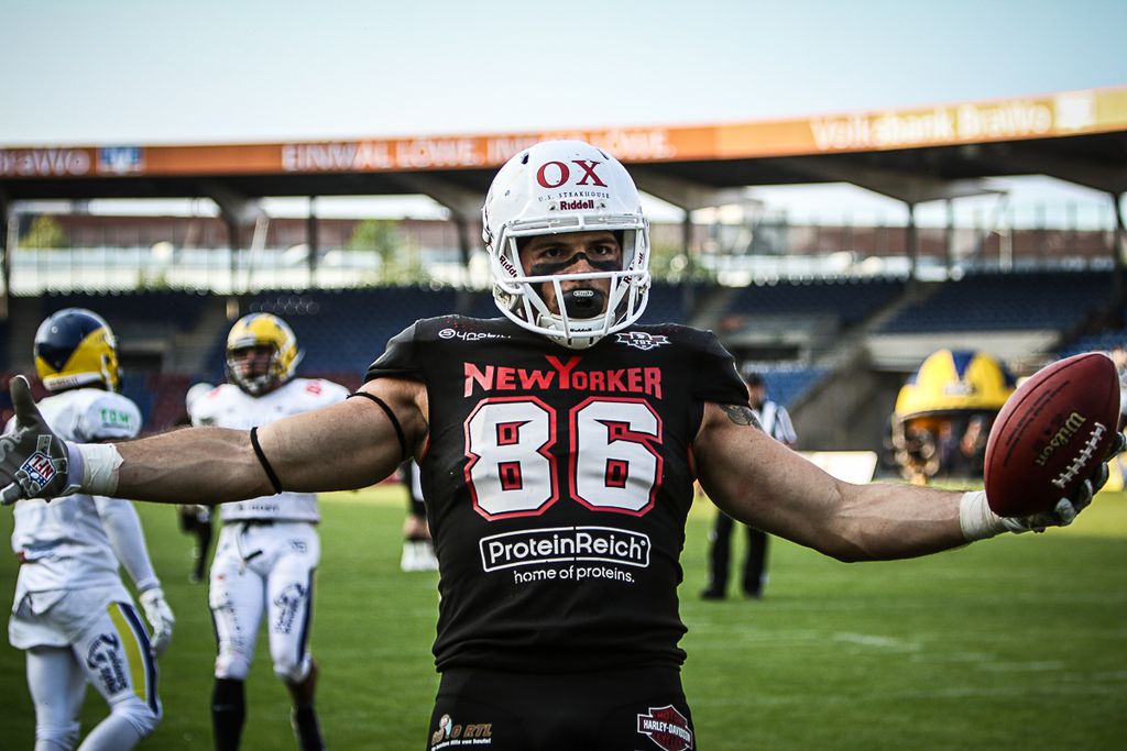 In der Saison 2017 lief er dann erstmalig für die Berlin Rebels auf und beendete die Saison als zweitbester Ballfänger des Teams mit insgesamt 40 Passfängen für einen Raumgewinn von 635 Yards und neun Touchdowns. Diese Leistungen führten den Hobbykoch dann letztendlich auch in die Nationalmannschaft und zu den World Games nach Breslau (Polen), wo er gemeinsam mit der deutschen Auswahl die Silbermedaille gewinnen konnte. Sein Können zeigt der Vollblut-Footballspieler nun seit seinem Wechseln im Jersey der Braunschweiger. Mit 21 Touchdowns und 1.100 Yards Raumgewinn ist er einer der Eckpfeiler im Angriff der Löwen der vergangenen zwei Spielzeiten.