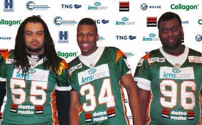 Dominik Davis bringt mit einer Größe von 1,81 m und 105 kg Gewicht nicht nur die perfekten körperlichen Vorraussetzungen für die Position des Linebackers mit. Dominik ist ein äußerst talentierter junger Linebacker. Er hat die Physis und den Instinkt, um erfolgreich in der GFL zu spielen, so Kiels Head Coach Patrick Esume. Auch über den Wechsel des 1,83 m großen Julian Ampaw freut Esume sich außerordentlich. Julian ist einer der begabtesten Runningbacks Norddeutschlands, zudem ist er sehr groß und schwer zwei weitere Pluspunkte für diese wichtige Position. Der dritte Neuzugang, Sidney Boakye, überragt mit seinen 1,87 m Körpergröße seine beiden Teamkameraden noch mal um einige Zentimeter. Er wird zukünftig in der Defenseline der Baltic Hurricanes zum Einsatz kommen. Sidney bringt mit seiner Größe und einem Gewicht von 125 kg die idealen physischen Vorraussetzungen für einen Defenseline-Spieler in der GFL mit. Ich bin wirklich stolz darauf, dass wir diese drei großartigen Talente dafür begeistern konnten, 2011 in Kiel zu spielen. Wir blicken immer in die Zukunft und sind daher sehr daran interessiert, die Mannschaft ständig zu verjüngen. Daher freue ich mich sehr über unseren talentierten Zuwachs, so der Kieler Head Coach.