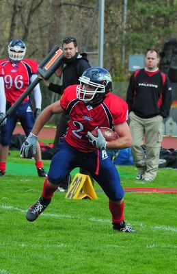 Die Selbsteinschätzung einer bisher erfolgreichen Karriere auf dem alten Kontinent lässt sich durch entsprechende Statistiken mühelos untermauern. Egal wo Ciasulli, der mit einem italienischen Pass ausgestattet ist, auftauchte, pflasterten statistische Spitzenwerte seinen Weg. Im Jahre 2008 bei den Jyvaskyla Jaguaarit der Finnischen Maple League verbuchte der Kalifornier 1526 Yards und 31 Touchdowns als Wide Receiver. Ein Jahr später in Ancona bei den Dolphins die er mitten in der Saison verstärkte, standen am Ende durchschnittlich zwei Touchdowns pro Spiel und 253,5 All Purpose Yards per game zu Buche. So ganz nebenbei fing Rocky auch noch drei Interceptions. Daraus lässt sich bereits ablesen, dass der Mann, welcher das Ausländerkontigent der Söldner nicht belasten wird, auch in der Defense eingesetzt werden kann, eine Vielseitigkeit, die Head Coach Joe Roman bei seinen Import-Spielern schätzen gelernt hat: Athleten, die auf mehreren Positionen einsetzbar sind, werden im Verlaufe einer Saison immer wichtiger, wenn Verletzungen einsetzen und der Kader ausgedünnt wird., so der US-Amerikaner, der dieses Jahr für seine zweite Saison an die Seitenlinie der Lahnstädter zurückkehren wird. Die Möglichkeit auch in der Secondary aufzulaufen war Ciasulli letztes Jahr in der Schweizer Liga bei den Calanda Broncos, mit denen er den EFAF Cup gewann und in der nationalen Liga ungeschlagen blieb, aufgrund den Regularien verwehrt, doch auch bei den Eidgenossen ließ er es sich nicht nehmen, 69 Catches für knapp 1.000 Yards hinzulegen - Spitzenwert der Liga.