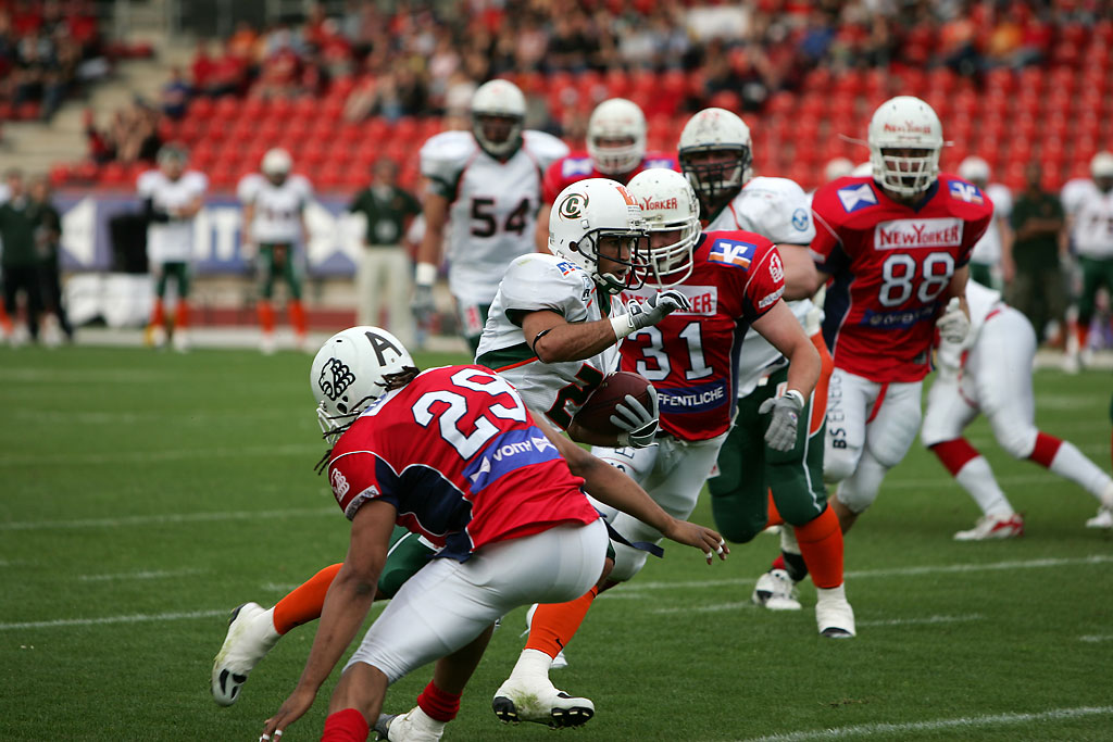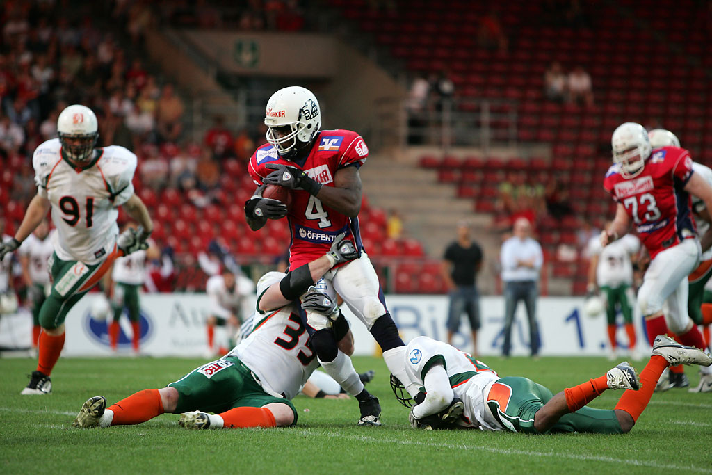 Dieses dynamische Duo erlief gegen die Hamburg Blue Devils jeweils über 100 Yards Raumgewinn. Sicherlich eine Marke, die einen Auswärtssieg an der Förde in greifbare Nähe rücken würde.