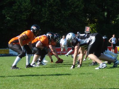 Das die Gäste auf keinen Fall zu unterschätzen sind, zeigte sich gleich zu Spielbeginn, wo die Tigers gleich den Rückwärtsgang einlegten und die Gäste erst an der eigenen Zwanziger stoppen konnten. Steve Snyder und Dean Marmon (2 x PAT Florian Stunkat) brachten dann im Verlauf der ersten Halbzeit die Tigers zu einem nicht gerade komfortablen 14:00 Pausenstand.