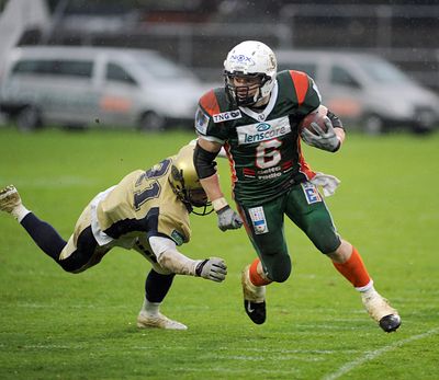Der Snap beim Punt im vierten Versuch kam nicht bis zu Timo Gross. Der Punter der Hurricanes konnte den Ball zwar noch aufnehmen, verlor das Spielgerät aber erneut. Beim zweiten Versuch den Ball zu sichern, stand er so unter Druck der Dresdener Defense, dass er zu einem Verzweiflungspass gezwungen war. Dieser landete in den Armen von Jared Dumm, der, ohne einen Schritt zu machen, den ersten Touchdown für Dresden erzielte.