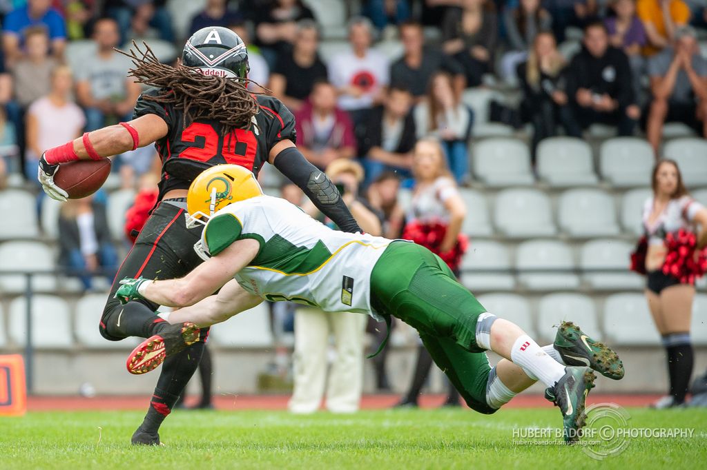 Wenn das klappt, sind unsere Pick-freundlichen Defensive Backs rund um Marius Riepe direkt zur Stelle, um den Ball wieder an die Kölner Offensive zu übergeben. Goodwyn wird am Samstag dem US Linebacker Burton de Koning gegenüberstehen und mit ihm ins Duell um die Yards gehen.