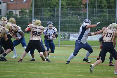 Auf dem Kunstrasen am Hamburger Jahnring hatten die Gäste aus der Krückaustadt die Angelegenheit weitestgehend im Griff. Das war beim engen 29:28-Hinspielsieg noch anders. "Aus meiner Sicht waren die Spiele gegen die Pioneers die schwersten der Saison. Wir mussten ordentlich kämpfen. Die gesamte Defense war überragend. Wenn die Defense steht ist das absolut viel wert", so Maier. Vor allem Linebacker Chris Beaulaurier absolvierte seine Defensiv-Aufgaben zur vollsten Zufriedenheit des Trainers. Schon zum zweiten Mal in dieser Saison ließen die Piraten keine Zähler für den Gegner auf dem Scoreboard zu.