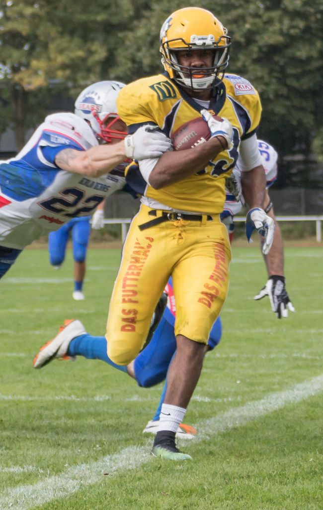 Coleman war für den ersten Elmshorner Touchdown verantwortlich. Der US-Amerikaner trug das Spielgerät über 70 Yards in die gegnerische Endzone – den Extra-Punkt verwandelte Kicker Sören Becker zum 7:0. Mit einem erfolgreichen Fieldgoal aus 28 Yards kamen die Berliner zu ihren ersten drei Zählern, ehe Coleman aus minimaler Distanz zur Endzone ein zweites Mal den Football über die Linie trug. Becker erhöhte per Extra-Kick auf 14:3. Und erneut war es dieses Duo, das für Furore sorgte. Diesmal sprintete Coleman über 30 Yards zu Touchdown Nummer drei. Becker machte mit einem Fieldgoal aus 20 Yards Entfernung den 24:3-Halbzeitstand perfekt.