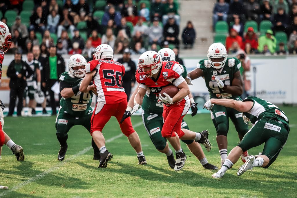 Doch das Spiel der beiden GFL-Teams soll nicht die einzige Partie des Tages sein. Den Anfang des „Red `n Green“-Tags soll das Duell der U16 der Scorpions gegen die U16 der Unicorns machen. Der Anpfiff ist für 11:30 Uhr geplant. Drei Stunden später soll dann die Stuttgarter U19 die Haller Jugend. Beide Spiele sind auf dem TUS-Platz angesetzt.