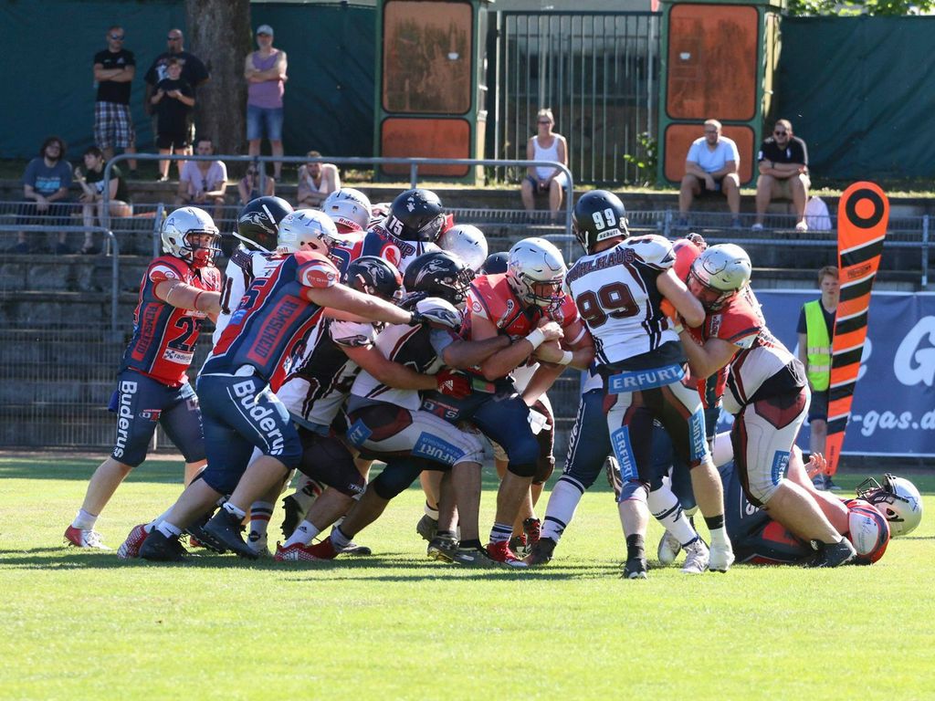 Trainingseinheiten zur Verfügung gehabt hatte und trotzdem war direkt der Einfluss des neuen Head Coaches erkennbar gewesen. In Wuppertal schließt sich somit ein kleiner Kreis für den Cheftrainer, unter dem der Amboss einen Leistungssprung vollzogen hat, weswegen Müller kurz nach der Niederlage von Münster die Verlängerung mit Weber für die Verbandsliga bekannt gab. Verzichten muss der Amboss im Vergleich zum Spiel bei den Blackhawks möglicherweise auf Offensive Tackle Brian Post, der sich eine Knieverletzung zugezogen hatte. Ben Brosman wird in Wuppertal nicht mehr im Aufgebot stehen, da er privat verhindert ist. Zudem war der Auftritt am vergangenen Wochenende gleichbedeutend mit seinem Karriereende gewesen. Dafür kann Weber wieder auf Wide Receiver Michael Schönen zurückgreifen, der seine Sperre abgesessen hat. Auch Kapitän Mike Jesinghaus und Guard Marlon Moretti stehen gegen Wuppertal wieder zur Verfügung. Jens Vogt, der dem Amboss im Abstiegskampf noch einmal als Defensive Tackle ausgeholfen hat, wird wahrscheinlich nun endgültig seine Pads mit dem Abpfiff bei den Greyhounds an den Nagel hängen.