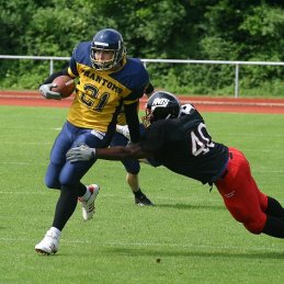 Steil nach oben zeigte in den letzten Begegnungen aber auch die Leistungskurve der Rothenburger Franken Knights. Diese haben nach Siegen über Stuttgart und Königsbrunn nicht nur bewiesen, dass sie eine leistungsstarke Mannschaft zusammengestellt haben. Mit 4:2 Punkten haben die Ritter auch den Anschluss an die Tabellenspitze gehalten. Will man 2005 aber mehr erreichen als den Klassen erhalt, dieser wurde von Präsident Christian Enz ja als Saisonziel ausgegeben, so muß man jetzt auch gegen eines der Top-Teams bestehen. Headcoach Martin Habelt hält dies durchaus für möglich. „Gerade der knappe Sieg gegen Weinheim hat die Schwächen der Phantoms offen gelegt. Mit dem richtigen Biß können wir sie knacken und dann ist dieses Jahr alles drin“, so Habelt.