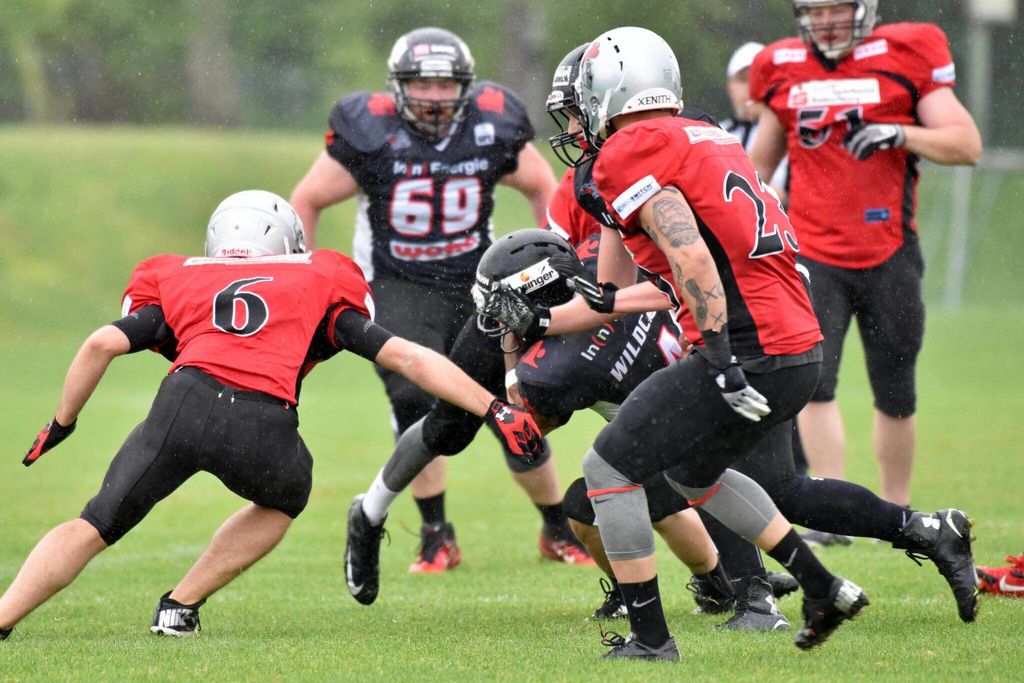 Das Spiel in Kirchdorf hatte fulminant begonnen. Mit einem Trickspielzug im ersten Play konnten die Wildcats sofort scoren und die Führung kurz darauf auch ausbauen. Anfangs konnten die Knights zwar noch gegenhalten und selbst Punkte auf das Brett bringen, mit zunehmendem Spielverlauf zeigte sich aber die Überlegenheit der Gastgeber aus Kirchdorf. Erst zum Ende des Spiels gelang es den Rittern dann erneut zu Punkten und das Ergebnis zu verkürzen. Im Spiel führten einige personelle Ausfälle zu zahlreichen Umstellungen und verschlechterten die Situation der Rothenburger zunehmend. Am schwersten wiegt hier noch immer der Verlust von Radek Warchol, der sich eine schwere Knieverletzung zuzog und in dieser Saison kein Spiel mehr bestreiten können wird.