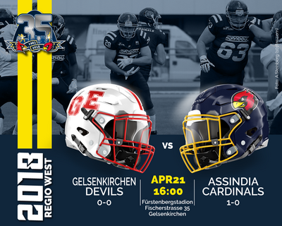 Während die „Men In Blue“ bereits ein Spiel absolviert haben, ist es für die Devils der erste Saisonauftritt. Entsprechend „heiß“ wird das Team in das „Ruhrpottderby“ starten. Die Assindia Cardinals sind vorbereitet und freuen sich beim Derby in Gelsenkirchen auf die Unterstützung vieler Fans der „Men In Blue“.
