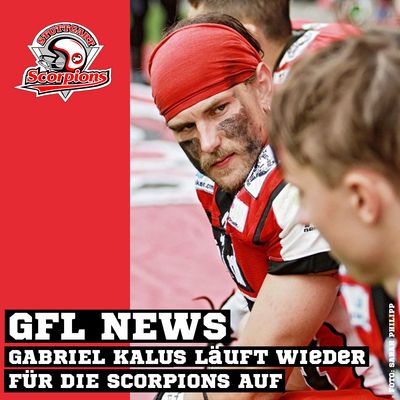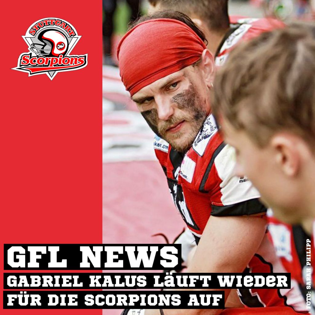 Zwei Spieltage nach Saisonbeginn können die Stuttgart Scorpions wichtige Verstärkung für ihre Verteidigung präsentieren: Defensive Back Gabriel Kalus wird ab sofort wieder für seinen Heimatverein auflaufen. Zwar noch nicht am kommenden Wochenende in München, da er auf Grund einer Verletzung noch Trainingsrückstand hat, aber in wenigen Wochen soll dieser dann aufgeholt sein.