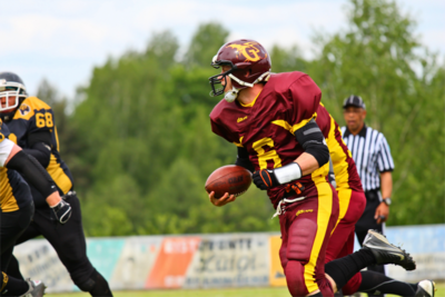 Stattdessen waren es die Gäste aus Unterfranken, die als nächstes ihren Weg per Pass in die Endzone fanden. Nach dem erneuten Block des Extrapoints liefen die Männer in Maroon nun einem 0 – 12 Punktestand hinterher.