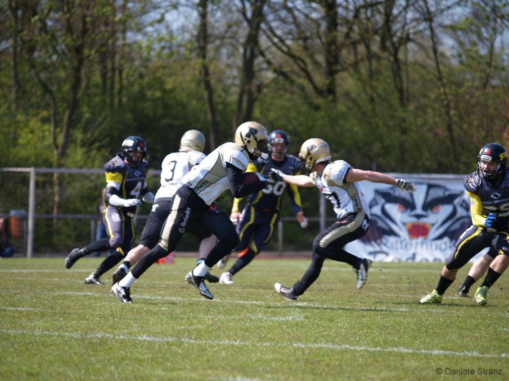 Noch vor dem Anpfiff äußerte sich der erste Vorsitzende David Schmidtmann zuversichtlich aber gleichzeitig zurückhaltend: „Ich glaube, dass es nicht einfach wird. Natürlich ist Ritterhude neu in der GFL 2, allerdings ist das kein Kriterium, an dem man eine Mannschaft messen kann! Sie werden uns das Leben schwermachen!" Die Sorge, dass gegen die Ritterhude Badgers eine Niederlage anstehen könnte, legte sich allerdings schnell. Direkt der erste Pass von Quarterback Ethan Haller in diesem Spiel landete in der Endzone in den Armen von Cameron Richmond. Dieser hatte zuvor den Kick-Off-Return bis tief in das Feld der Badgers hineingetragen und damit die Grundlage für diesen Touchdown gelegt. Da waren kaum 30 Sekunden gespielt.