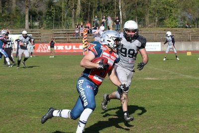 Jens Vogt (Tight End, Amboss): Ich fühle mich sehr wohl wieder für den Amboss zu spielen. Man merkt, dass ich in der Offense sehr gut in Tritt komme. Mit Sean habe ich ein gutes Timing durch das Training mittlerweile. In der Defense müssen wir hingegen noch etwas stärker werden. Alles in allem war es aber ein sehr guter Test, bei dem alle Spieler im Kader auf Einsatzzeiten gekommen sind.“