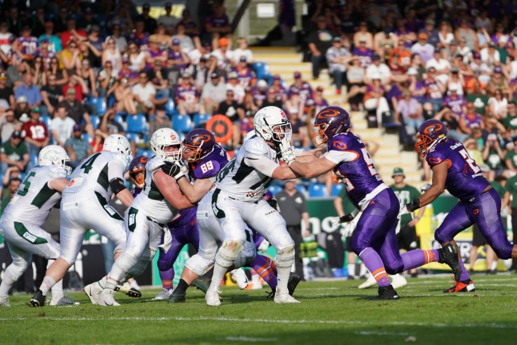 Solch ein Shutout, bei welchem der Gegner bei null Punkten gehalten wird, ist gerade bei einem Heimspiel schon ein klares Statement. Frankfurt Universe hatte an diesem Tag, bei bestem Sommerwetter vor 2.797 Zuschauern gegen souverän aufspielende Unicorns einfach keine Chance. Es war bereits vor dem Spiel klar, dass man die starke Haller Offense nie ganz unter Kontrolle bringen kann. Daher lagen die Hoffnungen auf der bislang guten Frankfurter Offense, die ausgerechnet gegen diesen starken Gegner nicht ihren besten Tag erwischte.