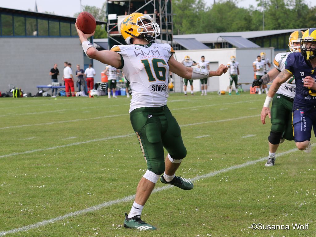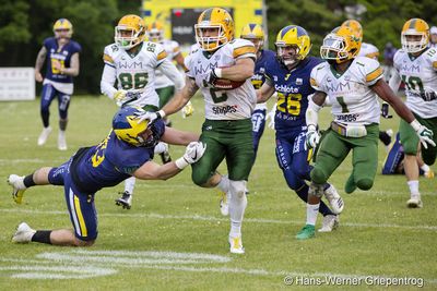 Wenngleich auch der Endstand des Spiels heute keinen positiven Ausgang hatte, ist Head Coach Köpper trotzdem zuversichtlich: „Man kann viel Positives aus dem gestrigen Spiel ziehen. Grundsätzlich bin ich sehr zufrieden mit der Einstellung meiner Mannschaft. Trotz der vielen Verletzungen auf der Defensive Line und der Umstellung in der Quarterback Position, in der Offense Line, haben die Jungs hart gekämpft und ihr Bestes gegeben. Wir werden darauf aufbauen und nächste Woche, wenn wir unser Verletzungslager etwas gelichtet haben, ein sehr gutes Heimspiel gegen Dresden liefern.“