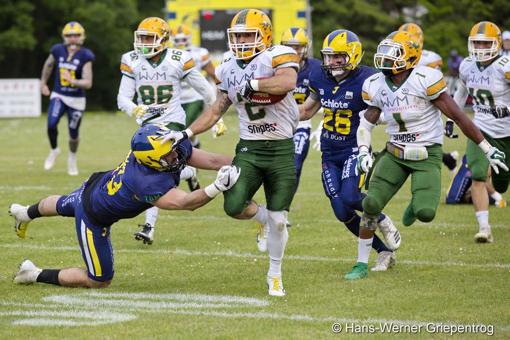 Im Homefield der Invasoren, im Stadion von Eintracht Hildesheim, unterlagen hart kämpfende und moralisch starke Kölner jedoch mit einem nicht leistungsgerechten Spielstand von 31:14 (7:0/14:14/14:0/3:0).