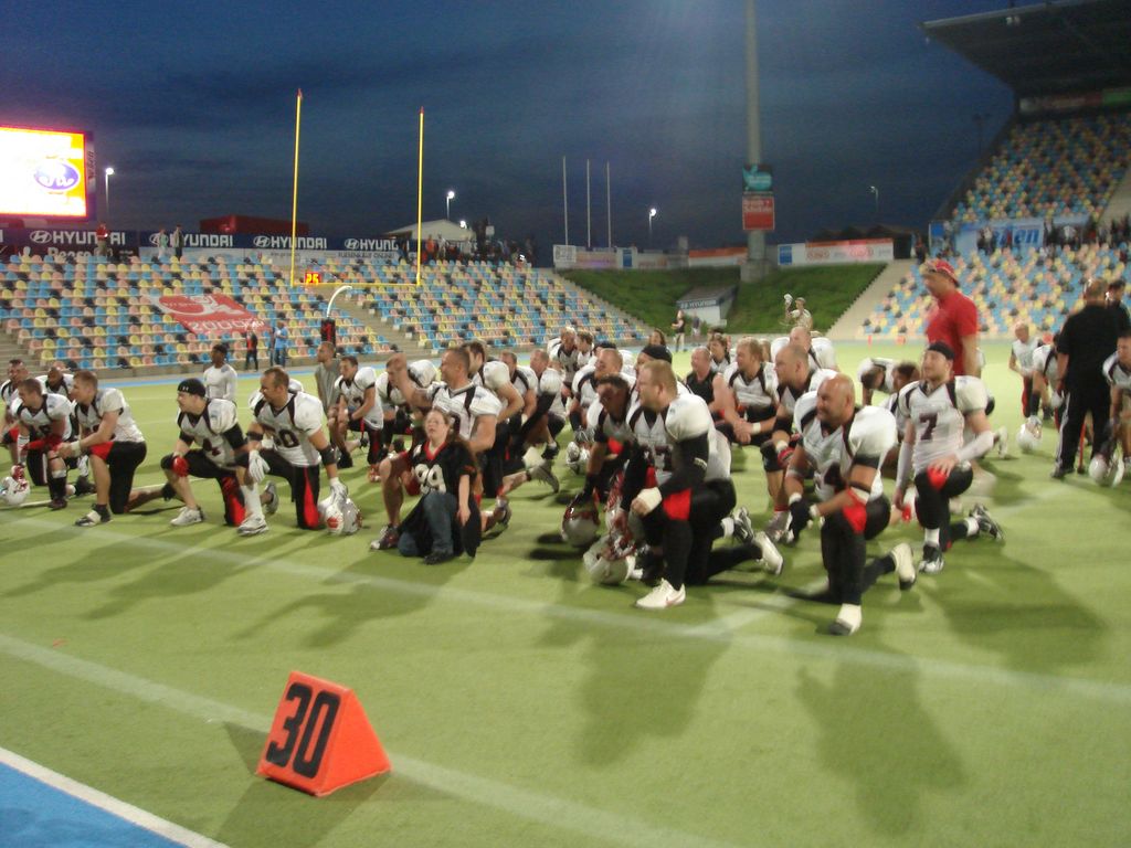 Im dritten Quarter mussten die Vitusstädter dann einen Schock verdauen. Quarterback Colin Clancy verletzte sich und musste ausscheiden. Der Schreck währte nur kurz, denn mit Fabian Schorn brachten die Mavericks einen weiteren guten Spielmacher auf das Feld. Beide Angriffsreihen waren nun sichtlich um Spielkontrolle bemüht, bissen sich aber immer wieder an den guten Verteidigungssystemen des Gegners die Zähne aus. Allerdings reichte wieder ein Fehler der Braunschweiger Offense aus, um dem Spiel eine entscheidende Richtung zu geben. Die Lions standen mit ihrem Angriff im wahrsten Sinne des Wortes mit dem Rücken zur Wand, als Mavericks Linebacker Timo Grützke einen freien Ball in deren Endzone zum 21:12 eroberte. Kicker Danny Lange setzte noch den Extrapunkt zum 22:12 nach. Im vierten Quarter versuchten die Lions noch einmal ins Spiel zurück zu kommen. Sie variierten stärker im Angriff, allerdings zeigte sich die Gladbacher Verteidigung sehr druckvoll. Zwei Fieldgoal-Versuche der Braunschweiger brachten keinen Erfolg. Unter Druck verschoss Lions-Kicker Tobias Goebel ein Fieldgoal und ein zweiter Versuch scheiterte an der aggressiven Gladbacher Defense. Jetzt spielte den Mavericks die ablaufende Zeit in die Karten und Braunschweig gelang es nicht mehr in Ballbesitz zu kommen.