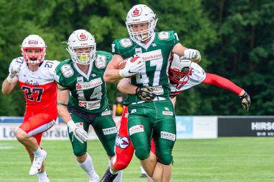 So endete dann auch der Arbeitstag von Quarterback Alexander Haupert schon vor Beginn des zweiten Viertels. Sein Ersatzmann Ian Gehrke warf bis zur Halbzeitpause sieben vollständige Pässe - drei davon zum Touchdown - und überlies in der zweiten Hälfte dem dritten Haller Quarterback James Slack das Feld.