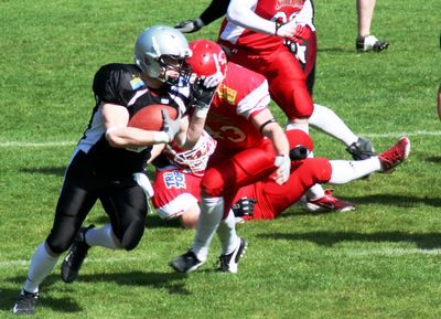 Beim Huskies Angriff lief es dagegen weiterhin mehr als rund. Kurz nach dem Ballbesitzwechsel geriet Hamburgs Quarterback Böhme in seinem Backfield zwar extrem unter Druck, er behielt jedoch die Nerven und erhöhte mit einem erstklassigen Touchdownpass auf seinen Receiver Ben Linska und dem verwandelten Zusatzversuch auf die 21:0 Führung.