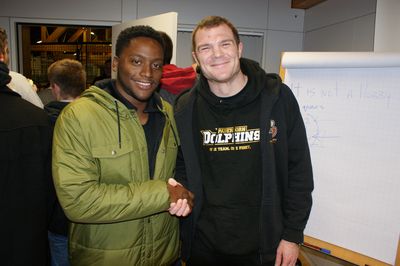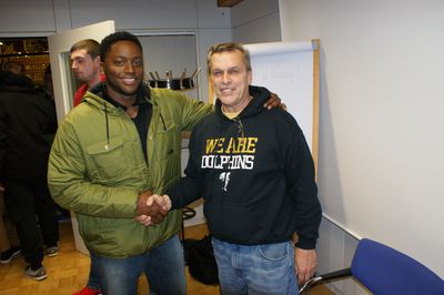 „Ich bin nicht nach Deutschland zurückgekommen, um zu verlieren, sondern weil ich American Football liebe und gerne gewinne“, berichtete der 27-jährige US-Boy in seinem knapp 20-minütigen „Vorstellungsgespräch“ während der Teamsitzung. Mit der Erfahrung aus 3 Jahren College-Football auf dem höchsten Level an der University of Georgia und mehreren Spielen in der NFL, unter anderem für die San Diego Chargers und die Washington Redskins, können die Paderborn Dolphins einen hochklassigen Neuzugang in ihrem Team verbuchen.