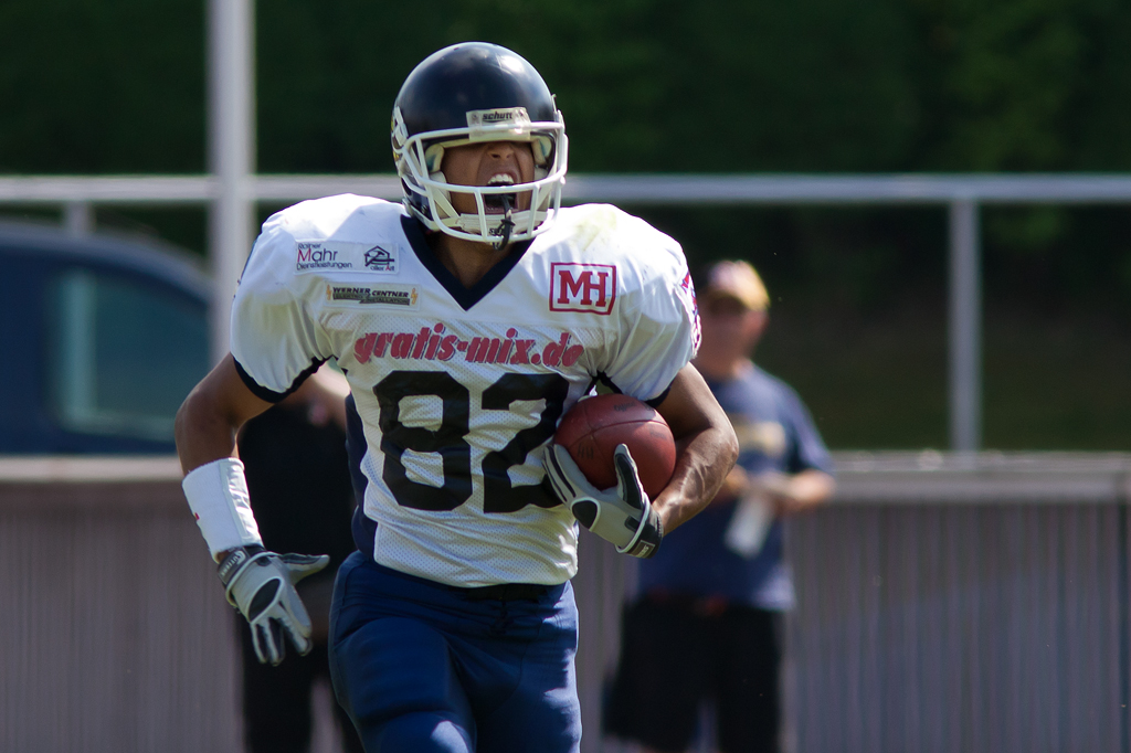 Montabaur legt los wie die Feuerwehr. Macht durch einen Touchdown durch Günther schnell klar wer der Herr im Hause ist. Hanau antwortet im Gegenzug. Victor Wrobel sichert sich den Kick der Gastgeber und beginnt dann das Spiel seines Lebens. Der bisher eher solide aber unauffällig spielende Hanauer schaltet den Turbo ein und “wrobelt” mit einem 90 yard Lauf in die Endzone der Farmers. Ausgleich. “Das war für mich schon die spielentscheidende Szene. Da haben wir gemerkt heut geht was”, so Hanaus Pressesprecher Achim Korn.