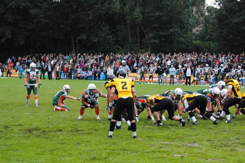 Bei den Hurricanes begann der Spieltag mit einer Begehung des Holstein-Stadions, die nach den Regenfällen der Nacht zuvor einen komplett im Wasser stehenden Rasen ergab. Auf der Moorteichwiese sah die Lage besser aus und so gab die Stadt Kiel den Platz für das Viertelfinale frei. Als die Nachricht von der Verlegung die Runde machte, fanden sich spontan auch viele Fans ein, die beim Aufbau halfen und sogar mit Nasssaugern besonders feuchte Stellen auf dem Feld bearbeiteten. Für diesen großartigen Einsatz bedankte Geschäftsführer Gunnar Peter sich vor dem Spiel per Mikrofon bei allen Helfern. Auf das sportliche Highlight stimmte dann Melanie Stahlkopf, Sängerin bei ABBA Magic, mit der deutschen Nationalhymne ein.