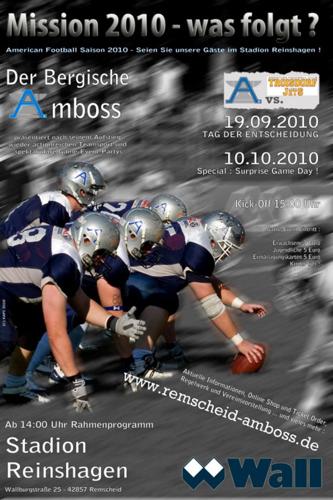 "Zuhause ist der Amboss bisher immer mit dem 12.Mann angetreten. Auch die durchwachsene Leistung der Jets gegen Bielefeld (22:20) zeigt, das auch für die Jets die Sasion hart war und es immer eine Chance gibt."Ergänzt PR Manager Matthias Picard. "Natürlich wollen wir zuhause zeigen, was wir drauf haben und dem Publikum ein tolles Spiel bieten, auch wenn die Tabellenplätze bereits bezogen sind. Wir rechnen mit vollem Haus und geben dementsprechend alles ! Die Stärke des Amboss ist sicherlich seine unbestritttene Heimstärke, das Sasionziel Klassenerhalt wurde mit Platz 2 mehr als erfüllt. Troisdorf spielt in diesem Jahr in einer eigenen Liga. Schon im Hinspiel haben wir gezeigt, das mit uns zu rechnen ist."