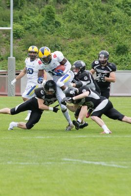 Derzeit lastet das Invaders-Spiel sehr auf dem Angriff um Quarterback Casey Therriault. So lange der Spielmacher und seine Männer weiterhin so punkten – am Wochenende Awini (3 Touchdowns), Dablé-Wolf (2), Flores, Morris, Richard – kann das Team auch ein paar schwache Momente in der Verteidigung verkraften. Doch das ist die Baustelle, an der Defense Coordinator Winston Huggins mit seinen Männern arbeitet.