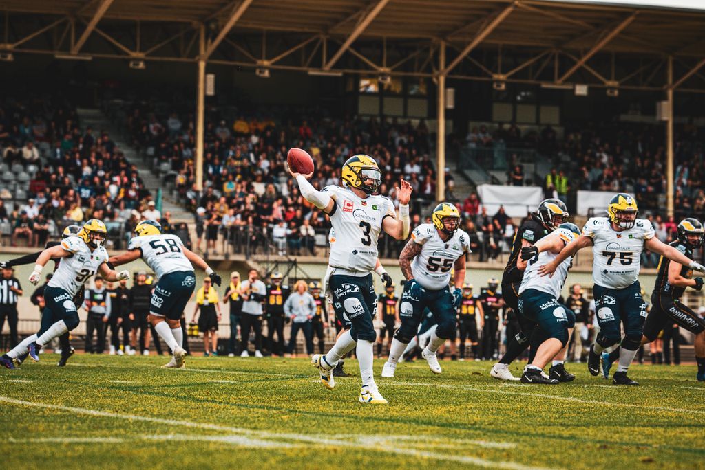 CJ Okpalobi sorgte mit der Two-Point-Conversion für den Last-Minute-Ausgleich zum 42:42. Wer 45 Sekunden vor Ende des Spiels aber dachte, es geht in die Verlängerung, der hatte die Rechnung ohne den überragenden Invaders-Quarterback Nelson Hughes gemacht. Mit zwei Pässen auf Lennart Stukenborg und Pieter Solf überbrückte er das gesamte Feld, um dann mit auslaufender Uhr selbst zum Touchdown zu laufen.