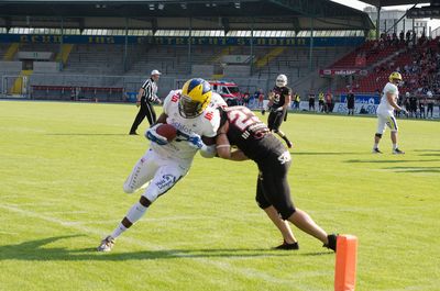 Bis tief ins vierte Viertel schenkten sich die Teams nichts. Doch dann fand Löwen-Runningback David McCants die Endzone und die Lions waren enteilt. Doch aufgeben wollten sich die Invaders nicht. Nach einigen Kuriositäten um das Zeit-Management im Stadion, feuerte Casey Therriault mit auslaufender Uhr noch einen langen Ball zu Jaleel Awini, der den Touchdown fing. Allerdings zu spät.